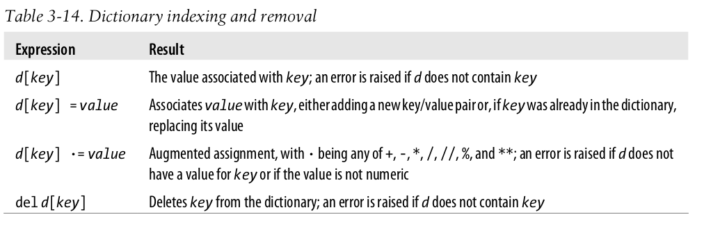 • Dictionaries can also be written as a comma-separated list of key/value pairs enclosed in curly braces, with each key and value separated by a colon.